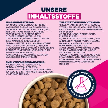 - Mélange de fibres adapté composé de prébiotiques (FOS), MOS et pulpe de betterave pour favoriser une digestion saine.