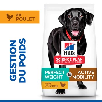 Hill's Croquettes pour chien Science Plan, Perfect Weight & Active Mobility, grande race adulte, au poulet 12 kg