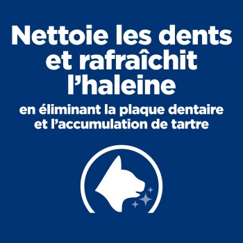 La nourriture pour chats Hill's Prescription Diet t/d pour l’hygiène dentaire est une excellente nourriture pour soutenir la santé des dents et de la gencive des chats. Cette nourriture sèche pour chats est au poulet et a un goût délicieux que votre chat va adorer. Les granulés sont plus gros et entourent les dents lors de la mastication, la structure spéciale des fibres réduit la plaque dentaire bactérienne, ce qui favorise une haleine fraîche, des gencives et des dents saines.
