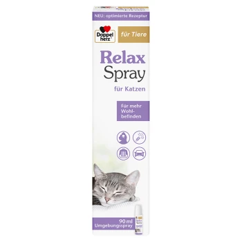 Emballage de nourriture pour chats présentant un chaton gris sur un fond flou, avec un bol de morceaux de bœuf et de veau, étiqueté "Rind & Kalb mit Brennnessel."